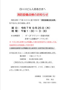 20250917_2_【四十川ビル】9月25日 消防設備点検のお知らせ