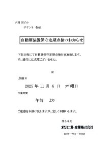 20251015_【六月田ビル】11月6日 自動扉装置保守定期点検のお知らせ