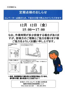 【六月田ビル】 12月12日 エレベーター点検のお知らせ